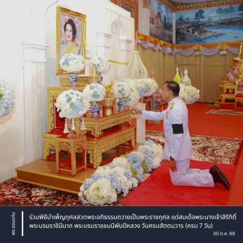 ** นายชรินทร์ ทองสุข ผู้ว่าราชการจังหวัดขอนแก่น เป็นประธานพิธีบำเพ็ญกุศลสวดพระอภิธรรมถวายเป็นพระราชกุศล แด่สมเด็จพระนางเจ้าสิริกิติ์ พระบรมราชินีนาถ พระบรมราชชนนีพันปีหลวง วันครบสัตตมวาร (ครบ 7 วัน) เพื่อแสดงความจงรักภักดีและน้อมรำลึกในพระมหากรุณาธิคุณอันหาที่สุดมิได้ โดยมีนางสินีนาฏ ทองสุข นายกเหล่ากาชาดจังหวัดขอนแก่น พร้อมด้วยรองผู้ว่าราชการจังหวัดขอนแก่น หัวหน้าส่วนราชการ ข้าราชการทุกภาคส่วน และพสกนิกรชาวจังหวัดขอนแก่น เข้าร่วมพิธี