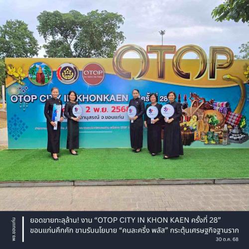 สำนักงานพัฒนาชุมชนจังหวัดขอนแก่น ร่วมกับคณะกรรมการเครือข่ายกลุ่มอาชีพ OTOP จังหวัดขอนแก่น ขานรับนโยบายกระตุ้นเศรษฐกิจของรัฐบาล ภายใต้ “โครงการคนละครึ่ง พลัส” จัดงาน “OTOP CITY IN KHON KAEN ครั้งที่ 28” อย่างยิ่งใหญ่ ระหว่างวันที่ 27 ตุลาคม – 2 พฤศจิกายน 2568 ณ สวนรัชดานุสรณ์ อำเภอเมืองขอนแก่น จังหวัดขอนแก่น