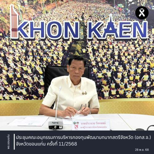 ** นายขจรเกียรติ รักพานิชมณี ผู้ว่าราชการจังหวัดขอนแก่น มอบหมายให้ นายประจวบ รักแพทย์ รองผู้ว่าราชการจังหวัดขอนแก่น เป็นประธานการประชุมคณะอนุกรรมการบริหารกองทุนพัฒนาบทบาทสตรี (อกส.จ.) จังหวัดขอนแก่น ครั้งที่ 11/2568