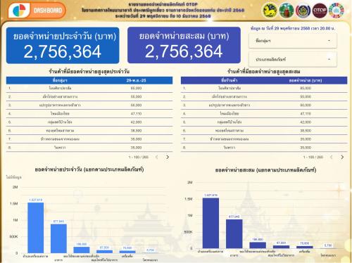 ** ยอดจำหน่ายประจำวันที่ 29 พฤศจิกายน 2568 รวม 2,756,364 บาท