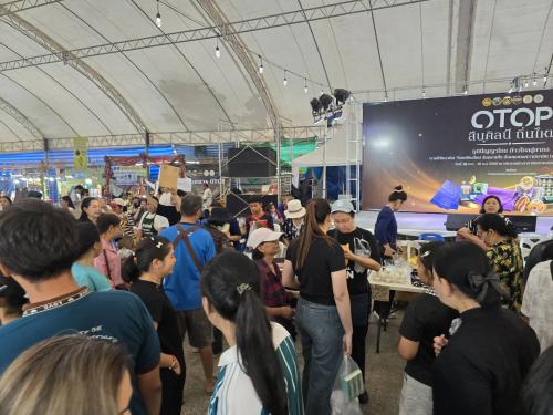 โดยในวันนี้ (5 ธันวาคม 2568) ได้รับเกียรติจาก นายขจรเกียรติ รักพานิชมณี ผู้ว่าราชการจังหวัดขอนแก่น และ นางปิติมา รักพานิชมณี นายกเหล่ากาชาดจังหวัดขอนแก่น/ประธานแม่บ้านมหาดไทยจังหวัดขอนแก่น เยี่ยมชมบูธ และให้กำลังใจผู้ผลิต ผู้ประกอบการ OTOP และรับชมกิจกรรมการประกวดร้องเพลง “OTOP ถุงผ้าเสียงทอง” ประเภทยุวชน