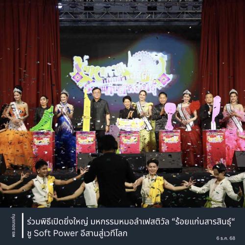 พช.ขอนแก่น : ร่วมพิธีเปิดยิ่งใหญ่ มหกรรมหมอลำเฟสติวัล “ร้อยแก่นสารสินธุ์“ ชู Soft Power อีสานสู่เวทีโลก