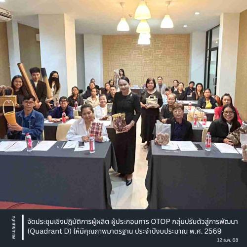 พช.ขอนแก่น : จัดประชุมเชิงปฏิบัติการผู้ผลิต ผู้ประกอบการ OTOP กลุ่มปรับตัวสู่การพัฒนา (Quadrant D) ให้มีคุณภาพมาตรฐาน ประจำปีงบประมาณ พ.ศ. 2569