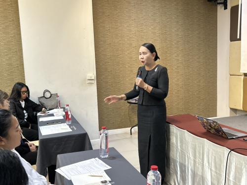** นางจิรภา เชื้อดวงผุย พัฒนาการจังหวัดขอนแก่น กล่าวต้อนรับและให้โอวาทในโครงการพัฒนาผลิตภัณฑ์ OTOP กลุ่มปรับตัวสู่การพัฒนา (Quadrant D) ให้มีคุณภาพมาตรฐาน ประจำปีงบประมาณ พ.ศ. 2569 พร้อมด้วย นางสาวพัชรา วงศ์สุวรรณ ผู้อำนวยการกลุ่มงานส่งเสริมการพัฒนาชุมชน นางอุไรพร ถิ่นวิมล นว.พช.ชำนาญการพิเศษ ผู้ช่วยกลุ่มงานส่งเสริมการพัฒนาชุมชน และเจ้าหน้าที่กลุ่มงานส่งเสริมการพัฒนาชุมชน ดำเนินงานโครงการฯ จัดขึ้นระหว่างวันที่ 12 – 13 ธันวาคม 2568 ณ โรงแรมไอโฮเทล ขอนแก่น