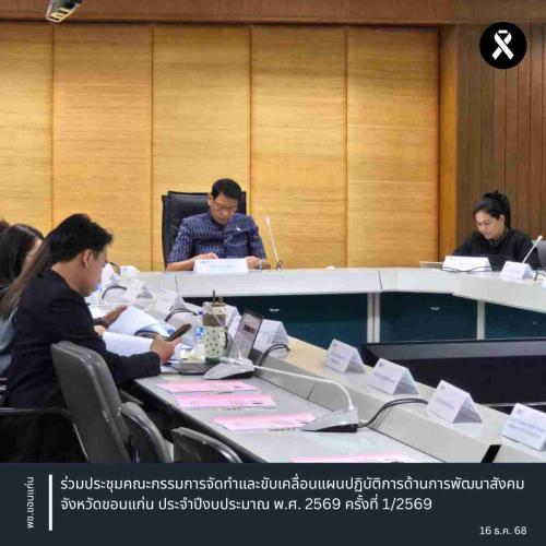 พช.ขอนแก่น : ร่วมประชุมคณะกรรมการจัดทำและขับเคลื่อนแผนปฏิบัติการด้านการพัฒนาสังคม จังหวัดขอนแก่น ประจำปีงบประมาณ พ.ศ. 2569 ครั้งที่ 1/2569