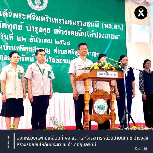 ** นายขจรเกียรติ รักพานิชมณี ผู้ว่าราชการจังหวัดขอนแก่น มอบหมายให้ นายพันธ์เทพ เสาโกศล รองผู้ว่าราชการจังหวัดขอนแก่น เป็นประธานเปิดการปฏิบัติงาน “หน่วยแพทย์เคลื่อนที่ พอ.สว.” ร่วมกับโครงการ “หน่วยบำบัดทุกข์ บำรุงสุข สร้างรอยยิ้มให้กับประชาชน” พร้อมด้วย นางปิติมา รักพานิชมณี นายกเหล่ากาชาดจังหวัดขอนแก่น นางราตรี เสาโกศล รองนายกเหล่ากาชาดจังหวัดขอนแก่น โดยมีนายกรุง นามสง่า นายอำเภออุบลรัตน์ กล่าวรายงานฯ เพื่อให้ประชาชนได้รับบริการช่วยเหลือด้านสุขภาพ ประกอบด้วย การป้องกันโรค การตรวจรักษา การฟื้นฟูและส่งเสริมสุขภาพของประชาชนให้มีสุขภาพที่ดี