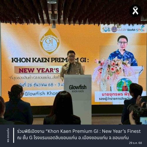 ** นางจิรภา เชื้อดวงผุย พัฒนาการจังหวัดขอนแก่น มอบหมายให้ นางสาวพัชรา วงศ์สุวรรณ ผู้อำนวยการกลุ่มงานส่งเสริมการพัฒนาชุมชน ร่วมพิธีเปิดงาน “Khon Kaen Premium GI : New Year’s Finest ที่สุดของสินค้า GI ขอนแก่น ส่งท้ายปีเก่า ต้อนรับปีใหม่” ณ ชั้น G โรงแรมแอดลิบขอนแก่น อ.เมืองขอนแก่น จ.ขอนแก่น ภายใต้โครงการส่งเสริมกลุ่มสินค้าเพื่อความยั่งยืนและสินค้าสร้างสรรค์อัตลักษณ์ไทยโกอินเตอร์ ประจำปีงบประมาณ พ.ศ. 2569 โดยมีนายยุทธพร พิรุณสาร รองผู้ว่าราชการจังหวัดขอนแก่น เป็นประธานในพิธีเปิด นางสาวนงค์นุช อุดมคำ พาณิชย์จังหวัดขอนแก่น เป็นผู้กล่าวรายงาน พร้อมด้วยหัวหน้าส่วนราชการ ผู้แทนภาคเอกชนและผู้ประกอบการ ร่วมเป็นเกียรติในพิธีอย่างพร้อมเพรียง