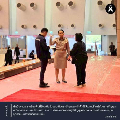 พช.ขอนแก่น : ดำเนินการเตรียมพื้นที่รับเสด็จ โดยสมเด็จพระเจ้าลูกเธอ เจ้าฟ้าสิริวัณณวรี นารีรัตนราชกัญญา เสด็จทอดพระเนตร นิทรรศการและการจัดแสดงผลงานภูมิปัญญาผ้าไทยและงานหัตถกรรมชุมชน จุดดำเนินการจังหวัดขอนแก่น