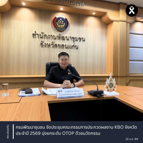 ** นายไพโรจน์ โสภาพร รองอธิบดีกรมการพัฒนาชุมชน เป็นประธานในการประชุมคณะกรรมการประกวดผลการดำเนินงานเครือข่ายองค์ความรู้ (Knowledge-Based OTOP : KBO) จังหวัด ประจำปี พ.ศ. 2569 ครั้งที่ 1/2569 โดยเป็นการประชุมผ่านระบบออนไลน์ ณ ห้องประชุมสำนักงานพัฒนาชุมชนจังหวัดขอนแก่น ชั้น 2 ศาลากลางจังหวัดขอนแก่น