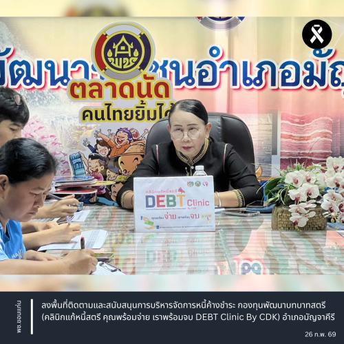 พช.ขอนแก่น : ลงพื้นที่ติดตามและสนับสนุนการบริหารจัดการหนี้ค้างชำระ กองทุนพัฒนาบทบาทสตรี (คลินิกแก้หนี้สตรี คุณพร้อมจ่าย เราพร้อมจบ DEBT Clinic By CDK) อำเภอมัญจาคีรี จังหวัดขอนแก่น