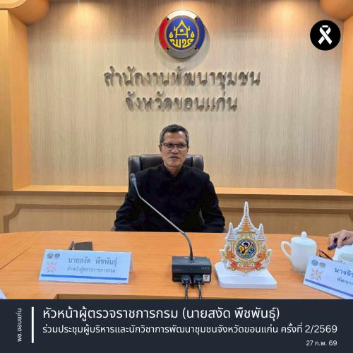 พช.ขอนแก่น : หัวหน้าผู้ตรวจราชการกรม (นายสงัด พืชพันธุ์) ร่วมประชุมผู้บริหารและนักวิชาการพัฒนาชุมชนจังหวัดขอนแก่น ครั้งที่ 2/2569