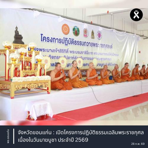 จังหวัดขอนแก่น : เปิดโครงการปฏิบัติธรรมเฉลิมพระราชกุศล เนื่องในวันมาฆบูชา ประจำปี 2569