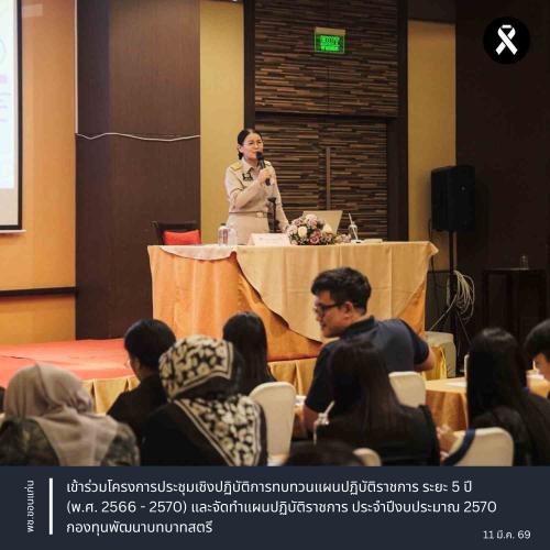 ** นางจิรภา เชื้อดวงผุย พัฒนาการจังหวัดขอนแก่น มอบหมายให้ นางสาว สุภาวดี ภักดีราช เจ้าพนักงานพัฒนาชุมชนปฏิบัติงาน นางสาววรัญญา พรมโสภา นักวิชาการเงินและบัญชี และนางแพงศรี เจริญคุณ คณะทำงานขับเคลื่อนกองทุนพัฒนาบทบาทสตรี เข้าร่วมโครงการประชุมเชิงปฏิบัติการทบทวนแผนปฏิบัติราชการ ระยะ 5 ปี (พ.ศ. 2566 - 2570) และจัดทำแผนปฏิบัติราชการ ประจำปีงบประมาณ 2570 กองทุนพัฒนาบทบาทสตรี ระหว่างวันที่ 9-11 มีนาคม 2569 ณ โรงแรม ไมด้า ดอนเมือง แอร์พอร์ต กรุงเทพมหานคร โดยมีวัตถุประสงค์โครงการเพื่อทบทวนแผนปฏิบัติราชการ ระยะ 5 ปี (พ.ศ. 2566 - 2570) และจัดทำแผนปฏิบัติราชการ ประจำปีงบประมาณ 2570 กองทุนพัฒนาบทบาทสตรี