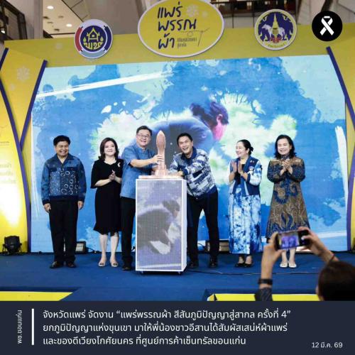 พช.ขอนแก่น : จังหวัดแพร่ จัดงาน “แพร่พรรณผ้า สีสันภูมิปัญญาสู่สากล ครั้งที่ 4” ยกภูมิปัญญาแห่งขุนเขา มาให้พี่น้องชาวอีสานได้สัมผัสเสน่ห์ผ้าแพร่และของดีเวียงโกศัยนคร ที่ศูนย์การค้าเซ็นทรัลขอนแก่น