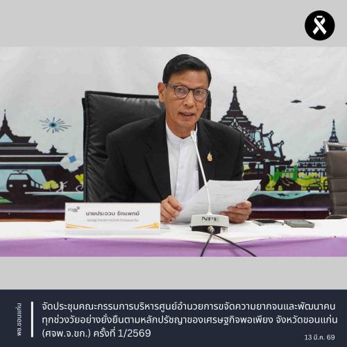 จังหวัดขอนแก่น : จัดประชุมคณะกรรมการบริหารศูนย์อำนวยการขจัดความยากจนและพัฒนาคนทุกช่วงวัยอย่างยั่งยืนตามหลักปรัชญาของเศรษฐกิจพอเพียง จังหวัดขอนแก่น (ศจพ.จ.ขก.) ครั้งที่ 1/2569