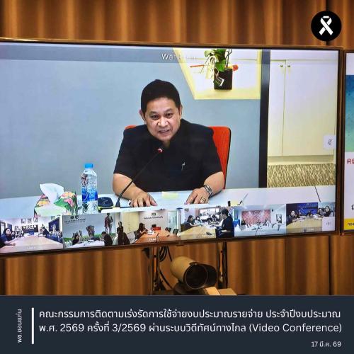 ** นายสยาม ศิริมงคล อธิบดีกรมการพัฒนาชุมชน มอบหมายให้ นายสามารถ สุวรรณมณี รองอธิบดีกรมการพัฒนาชุมชน เป็นประธานการประชุมคณะกรรมการติดตามเร่งรัดการใช้จ่ายงบประมาณรายจ่าย ประจำปีงบประมาณ พ.ศ. 2569 ครั้งที่ 3/2569 ผ่านประชุมวิดีทัศน์ทางไกล (Video Conference) ณ ห้องประชุม war room ชั้น5 กรมการพัฒนาชุมชน