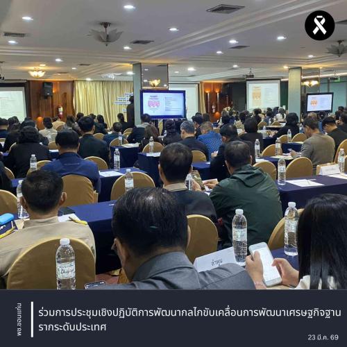 ** นางจิรภา เชื้อดวงผุย พัฒนาการจังหวัดขอนแก่น มอบหมายให้ นางสาวพัชรา วงศ์สุวรรณ ผู้อำนวยการกลุ่มงานส่งเสริมการพัฒนาชุมชน พร้อมด้วย นางสาวธีรานุช สิงหวศิน นักวิชาการพัฒนาชุมชนปฏิบัติการ นางสาวเตือนใจ สมหนองอ้อ นักวิชาการพัฒนาชุมชนปฏิบัติการ และนางสาวชนาภา หันจางสิทธิ์ ผู้แทนบริษัทประชารัฐรักสามัคคีจังหวัดขอนแก่น เข้าร่วมการประชุมเชิงปฏิบัติการพัฒนากลไกขับเคลื่อนการพัฒนาเศรษฐกิจฐานรากระดับประเทศ ในระหว่างวันที่ 23-25 มีนาคม 2569 ณ โรงแรมนนทบุรี พาเลซ ตำบลสวนใหญ่ อำเภอเมืองนนทบุรี จังหวัดนนทบุรี