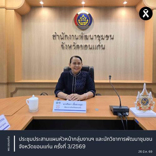 วันที่ 26 มีนาคม 2569 ณ ห้องประชุมสำนักงานพัฒนาชุมชนจังหวัดขอนแก่น (ชั้น 2) ศาลากลางจังหวัดขอนแก่น