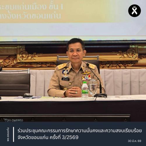 ** นายพันธ์เทพ เสาโกศล เป็นรองผู้ว่าราชการจังหวัดขอนแก่น เป็นประธานการประชุมคณะกรรมการรักษาความมั่นคงและความสงบเรียบร้อยจังหวัดขอนแก่น ครั้งที่ 3/2569 โดยมีหน่วยงานที่เกี่ยวข้องเข้าร่วมประชุมอย่างพร้อมเพรียง เพื่อบูรณาการการขับเคลื่อนงานด้านความมั่นคงและความสงบเรียบร้อยในพื้นที่