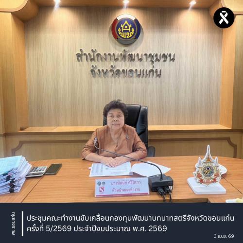 วันที่ 3 เมษายน 2569 ณ ห้องประชุมสำนักงานพัฒนาชุมชนจังหวัดขอนแก่น ชั้น 2 ศาลากลางจังหวัดขอนแก่น (หลังใหม่)