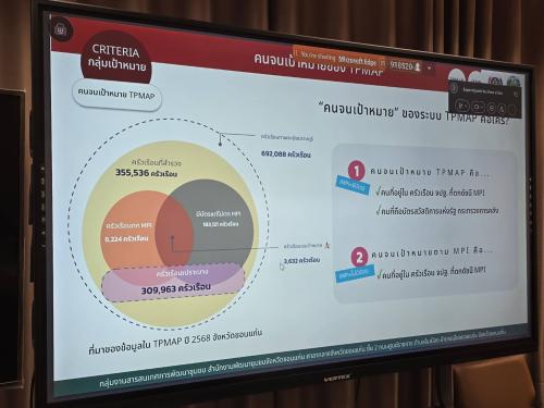 ** ในการนี้ นางจันทรนันท์ สุดจริง ผู้อำนวยการกลุ่มงานสารสนเทศการพัฒนาชุมชน ได้นำเสนอข้อมูลและแนวทางการดำเนินงานผ่านระบบแฟ้มบ้านพัฒนาคนไทย (TPMAP Logbook) เพื่อให้เจ้าหน้าที่ในระดับพื้นที่ใช้เป็นเครื่องมือสำคัญในการวางแผนและขับเคลื่อนการดำเนินงานในระดับนโยบายและพื้นที่ มุ่งเน้นการบันทึกข้อมูลการสำรวจ ผลการให้ความช่วยเหลือ และการติดตามความก้าวหน้าให้มีความถูกต้อง ครบถ้วน และเป็นปัจจุบันที่สุด