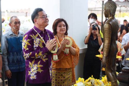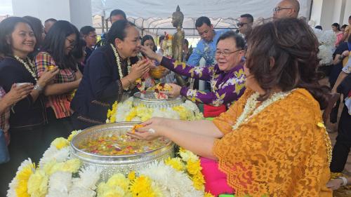 ** ภายในพิธี นายขจรเกียรติ รักพานิชมณี ผู้ว่าราชการจังหวัดขอนแก่น นางปิติมา รักพานิชมณี ประธานแม่บ้านมหาดไทยจังหวัดขอนแก่น พร้อมด้วยรองผู้ว่าราชการจังหวัด หัวหน้าส่วนราชการ นายอำเภอ ผู้บริหารองค์กรปกครองส่วนท้องถิ่น ภาคเอกชน และประชาชน เข้าร่วมอย่างพร้อมเพรียง โดยมีกิจกรรมสำคัญ อาทิ การกล่าวอวยพรเนื่องในเทศกาลสงกรานต์ พิธีขอขมาพระรัตนตรัย การสรงน้ำพระพุทธรูป และพิธีรดน้ำขอพรผู้ว่าราชการจังหวัดขอนแก่นและผู้บริหารระดับสูง
