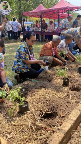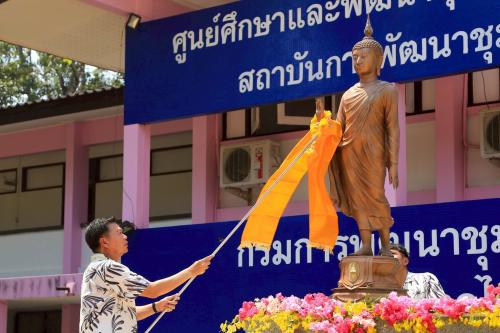 ** นอกจากนี้ ยังมีกิจกรรมด้านการพัฒนาชุมชนและการสร้างความมั่นคงทางอาหาร อาทิ การมอบโฉนดพื้นที่รับผิดชอบการพัฒนาแก่เจ้าหน้าที่ศูนย์ฯ การมอบเสื้อผ้ามือสองเพื่อส่งต่อให้ผู้ด้อยโอกาส การมอบไก่พันธุ์ไข่และลูกพันธุ์ปลาดุกพร้อมอุปกรณ์เลี้ยง เพื่อเป็นต้นแบบการสร้างความมั่นคงทางอาหาร ตลอดจนการมอบเมล็ดพันธุ์ผักให้แก่พัฒนาการจังหวัด ภาคีเครือข่าย และผู้นำชุมชน เพื่อนำไปขยายผลการปลูกผักสวนครัว ทั้งนี้ ผู้เข้าร่วมงานยังได้ร่วมกันปลูกผักสวนครัวบริเวณศูนย์ฯ และร่วมกิจกรรมรดน้ำดำหัวขอพรตามประเพณีสงกรานต์ สะท้อนถึงความรัก ความเคารพ และความสามัคคีในองค์กร โอกาสนี้ รองอธิบดีกรมการพัฒนาชุมชน พร้อมด้วยแขกผู้มีเกียรติ ได้กล่าวให้โอวาทและอวยพรแก่ผู้เข้าร่วมกิจกรรม เพื่อความเป็นสิริมงคล เนื่องในโอกาสวันขึ้นปีใหม่ไทย สร้างขวัญกำลังใจแก่บุคลากรและเครือข่ายในการขับเคลื่อนงานพัฒนาชุมชนอย่างเข้มแข็งและยั่งยืนต่อไป