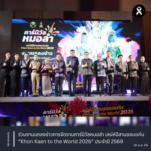 ** ทั้งนี้ การจัดงานคาร์นิวัลหมอลำ เสน่ห์อีสานขอนแก่น “Khon Kaen to the World 2026” มีกำหนดจัดขึ้นระหว่างวันที่ 20–22 พฤษภาคม 2569 ณ บริเวณบึงแก่นนคร อำเภอเมืองขอนแก่น จังหวัดขอนแก่น เพื่อผลักดันจังหวัดขอนแก่นสู่การเป็น “มหานครแห่งหมอลำ” และสร้างการรับรู้ในระดับสากลต่อไป