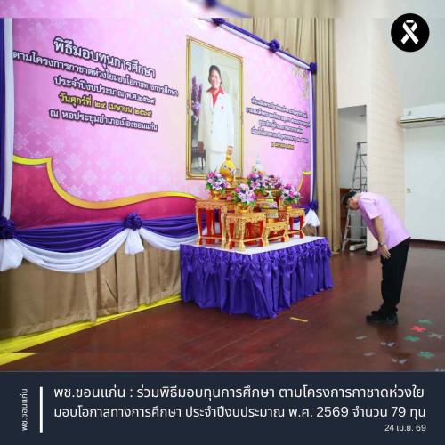พช.ขอนแก่น : ร่วมพิธีมอบทุนการศึกษา ตามโครงการกาชาดห่วงใยมอบโอกาสทางการศึกษา ประจำปีงบประมาณ พ.ศ. 2569 จำนวน 79 ทุน