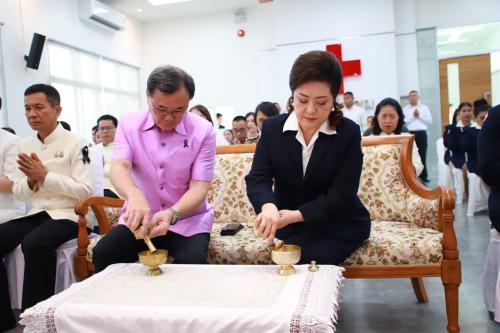 ** ภายในพิธี ประธานได้จุดธูปเทียนบูชาพระรัตนตรัย เปิดกรวยกระทงดอกไม้ธูปเทียนแพถวายราชสักการะหน้าพระฉายาลักษณ์ จากนั้นพระสงฆ์จำนวน 5 รูป เจริญพระพุทธมนต์ ก่อนที่ประธานและผู้มีเกียรติจะร่วมถวายภัตตาหารเพลและเครื่องไทยธรรม เพื่อถวายเป็นพระราชกุศล และเฉลิมพระเกียรติให้ทรงมีพระพลานามัยแข็งแรงสมบูรณ์ เป็นมิ่งขวัญแก่ปวงชนชาวไทยสืบไป