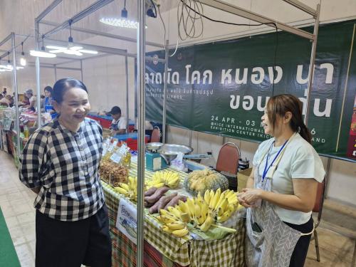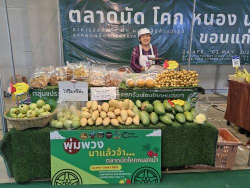 ** พร้อมโซน “ตลาดนัดโคกหนองนา จังหวัดขอนแก่น” ที่นำผลิตภัณฑ์ชุมชน อาหารพื้นบ้าน และสินค้าการเกษตรปลอดภัย มาจำหน่าย 8 กลุ่ม จาก 5 อำเภอ ได้แก่ อำเภอเมืองขอนแก่น อำเภอชุมแพอำเภอแวงใหญ่ อำเภอบ้านแฮด อำเภอภูผาม่าน สะท้อนวิถีเศรษฐกิจพอเพียง และการพัฒนาคุณภาพชีวิตของคนในชุมชน