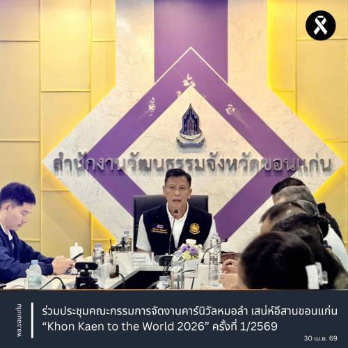 ** นางจิรภา เชื้อดวงผุย พัฒนาการจังหวัดขอนแก่น มอบหมายให้ นางสาวพัชรา วงศ์สุวรรณ ผู้อำนวยการกลุ่มงานส่งเสริมการพัฒนาชุมชน เข้าร่วมการประชุมคณะกรรมการจัดงานคาร์นิวัลหมอลำ เสน่ห์อีสานขอนแก่น “Khon Kaen to the World 2026” ครั้งที่ 1/2569 ณ ห้องประชุมสำนักงานวัฒนธรรมจังหวัดขอนแก่น ศาลากลางจังหวัดขอนแก่น เพื่อบูรณาการความร่วมมือทุกภาคส่วนในการขับเคลื่อนงานระดับจังหวัดสู่ระดับนานาชาติ